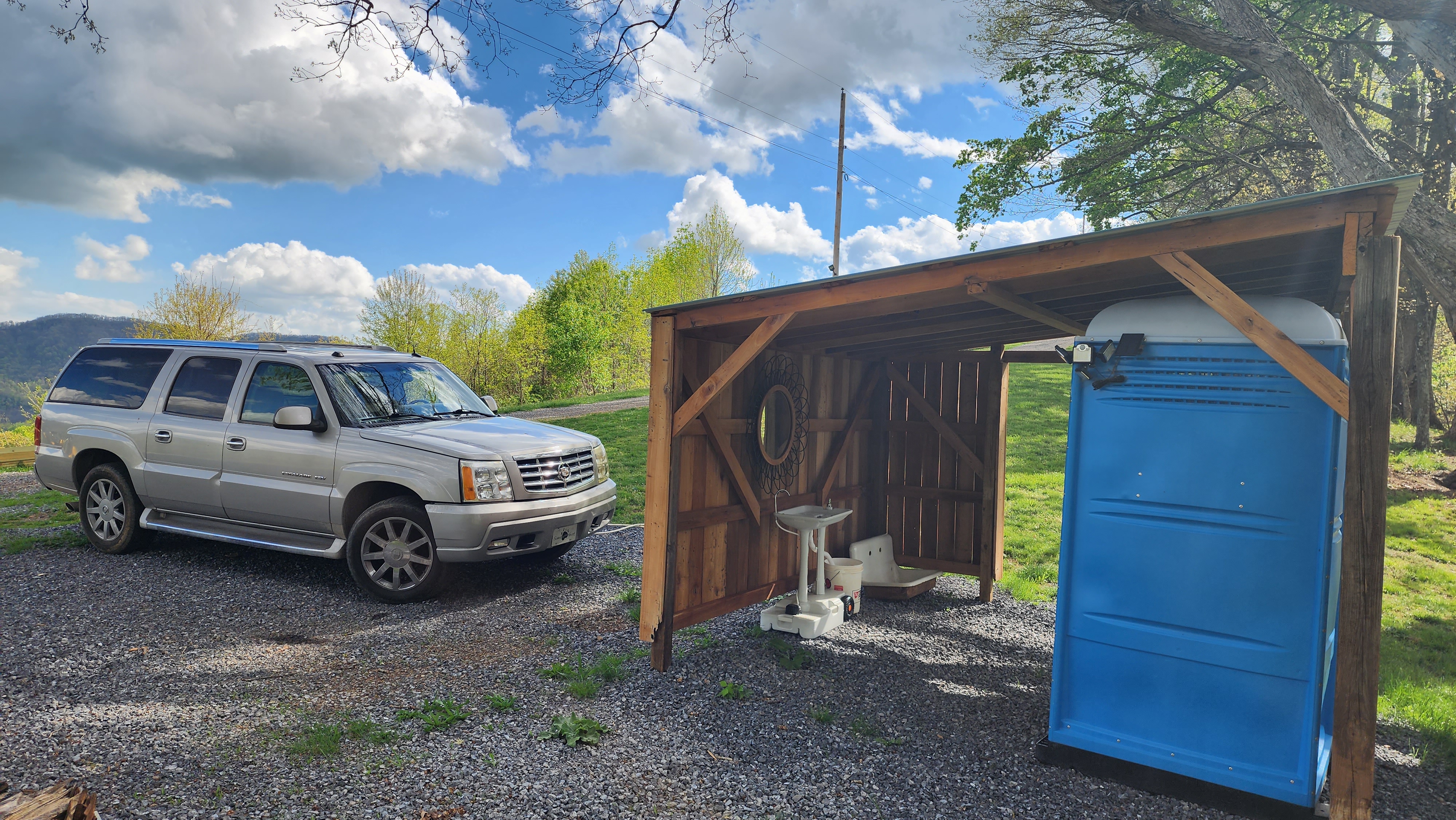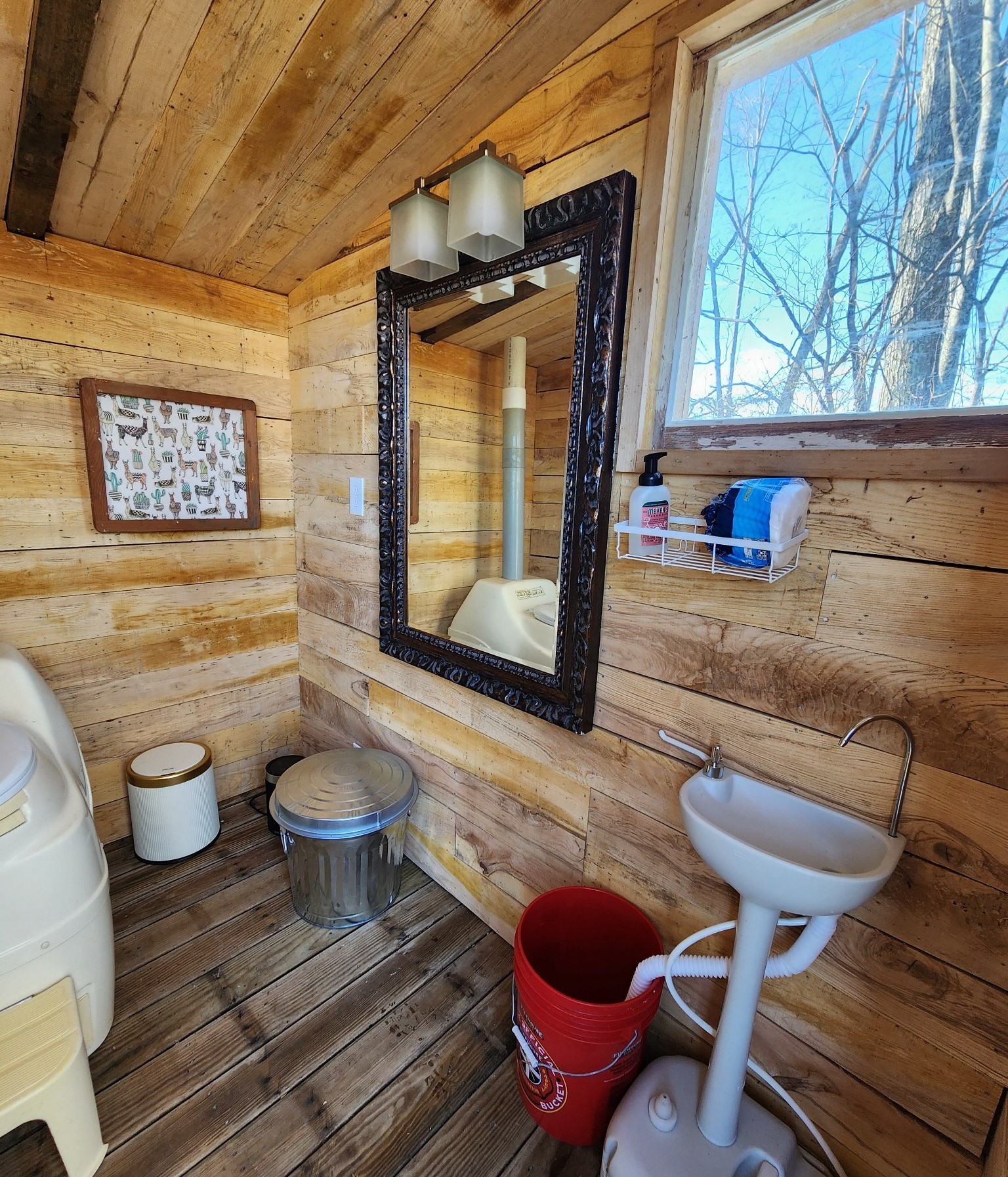 Portable or composting restroom facilities with hand washing stations are just a short walk from the cabin.