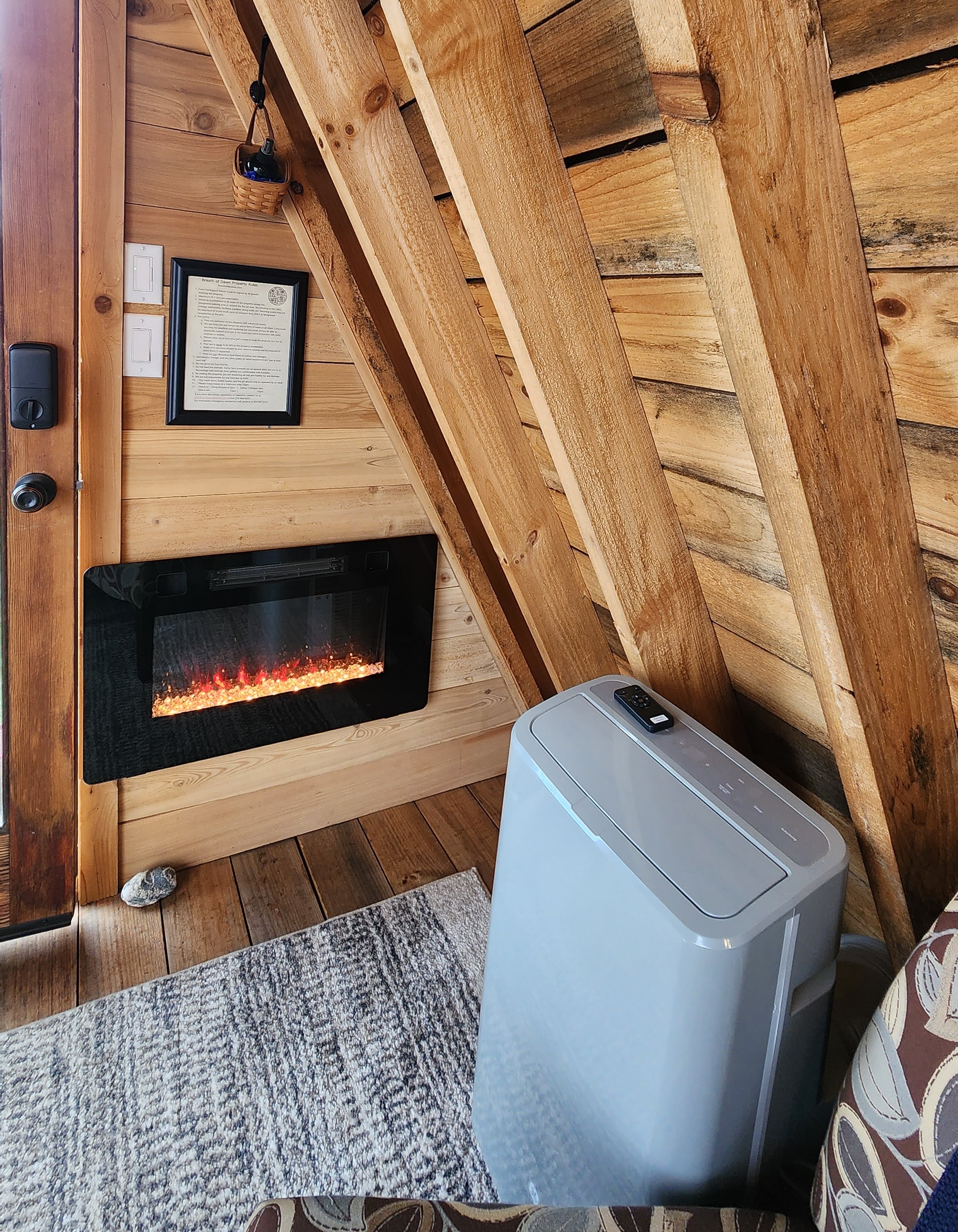 We provide drinking water, electric burner, portable heater & AC, and mini-fridge.