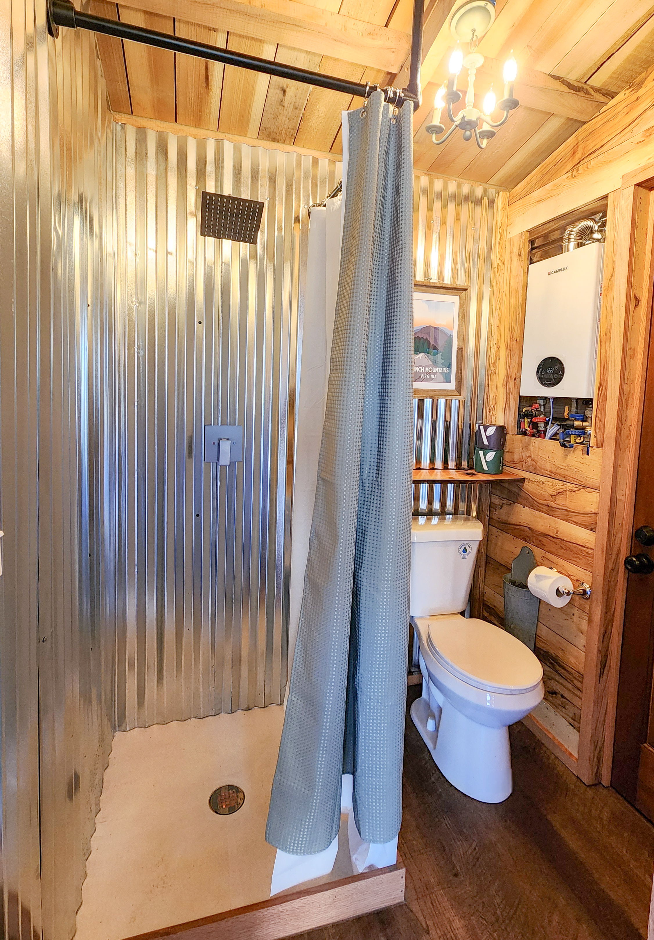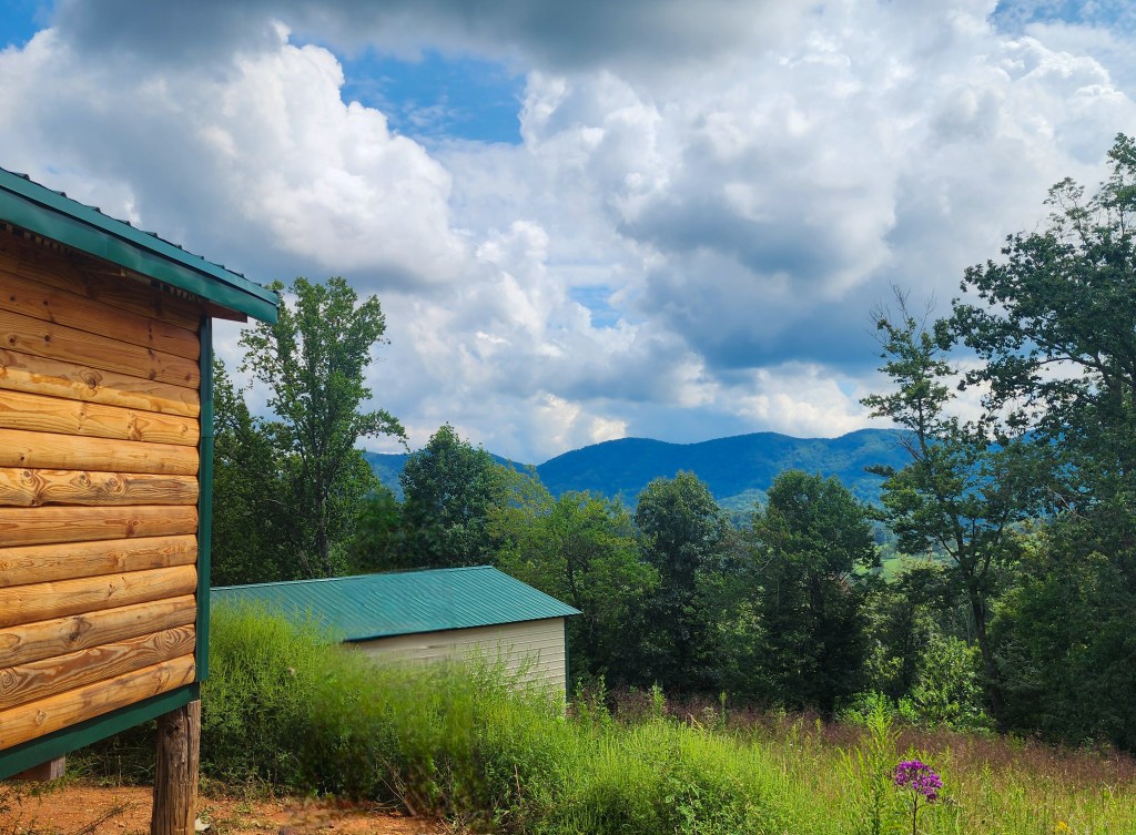 Clinch View includes climate control via mini split, full electric power, and a private bathroom with shower, sink, and toilet. No other cabins are visible from the property, and the surrounding land stays quiet — creating the kind of seclusion that’s hard to find and easy to settle into. The cabin does overlook one of our farm barns, which is currently unused.