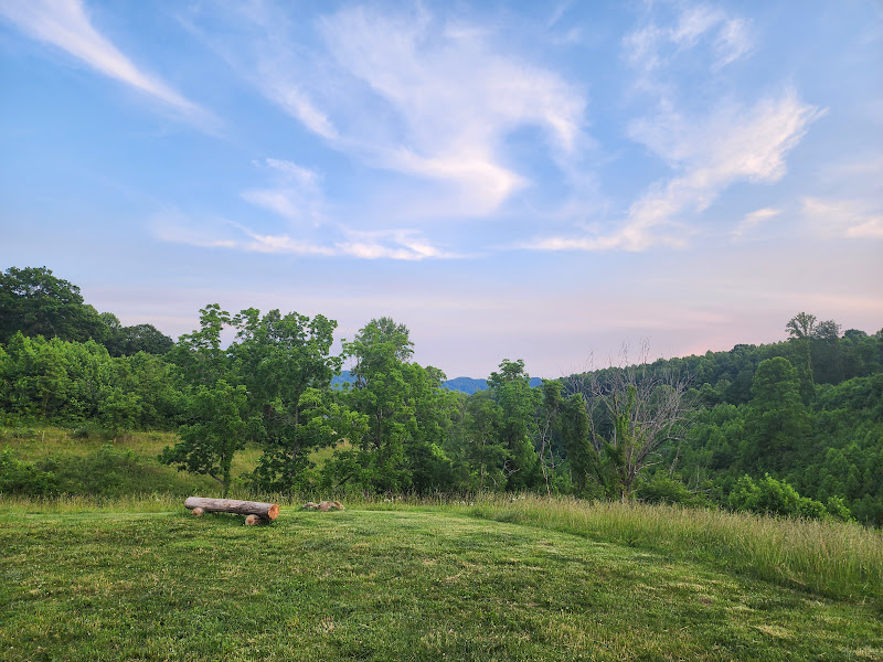 Breath of Dawn offers a range of back-to-nature accommodations on its 35-acre educational homestead in rural Lebanon, VA. Guests can stay in a primitive A-frame dry cabin, perched at a mountaintop vantage with cozy amenities—mini-fridge, electric heater and AC, queen bed, and a fire pit—while enjoying panoramic views and full immersion in mountain life. For a more rustic experience, there are primitive camping spots on terraced hillside fields: each site includes a fire pit, bench, and porta-potty access, perfect for unplugging under the stars and embracing the wild.