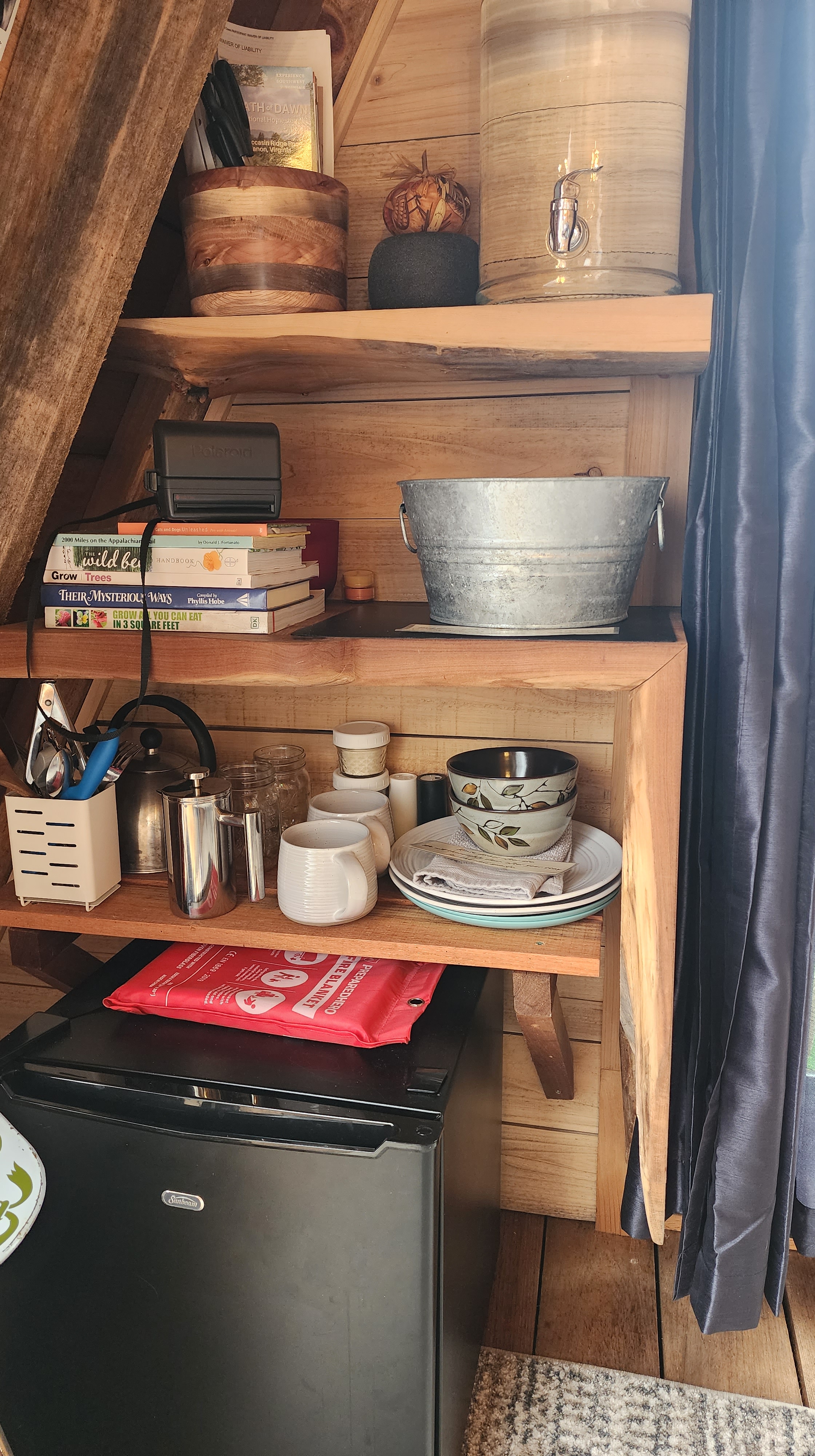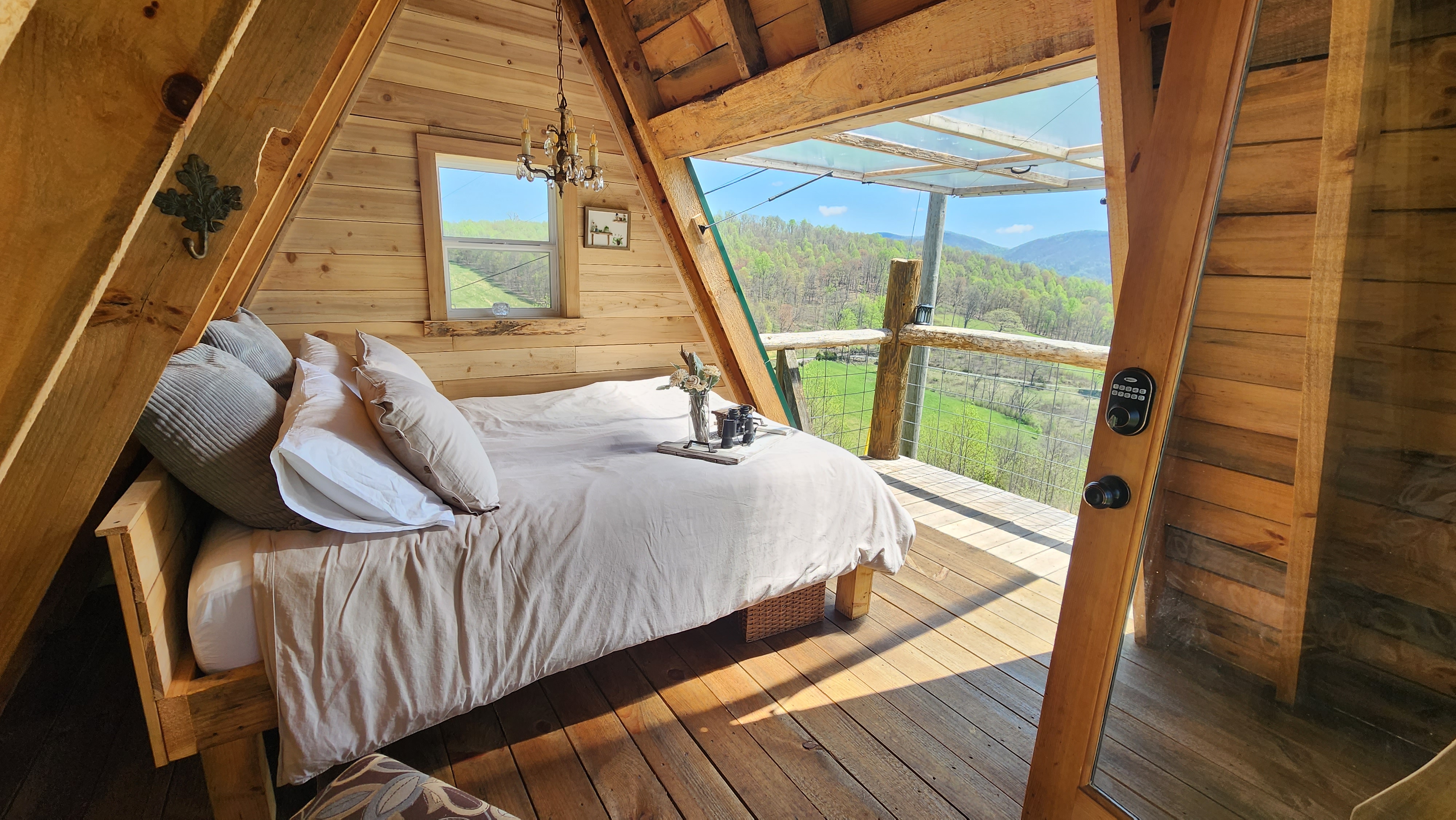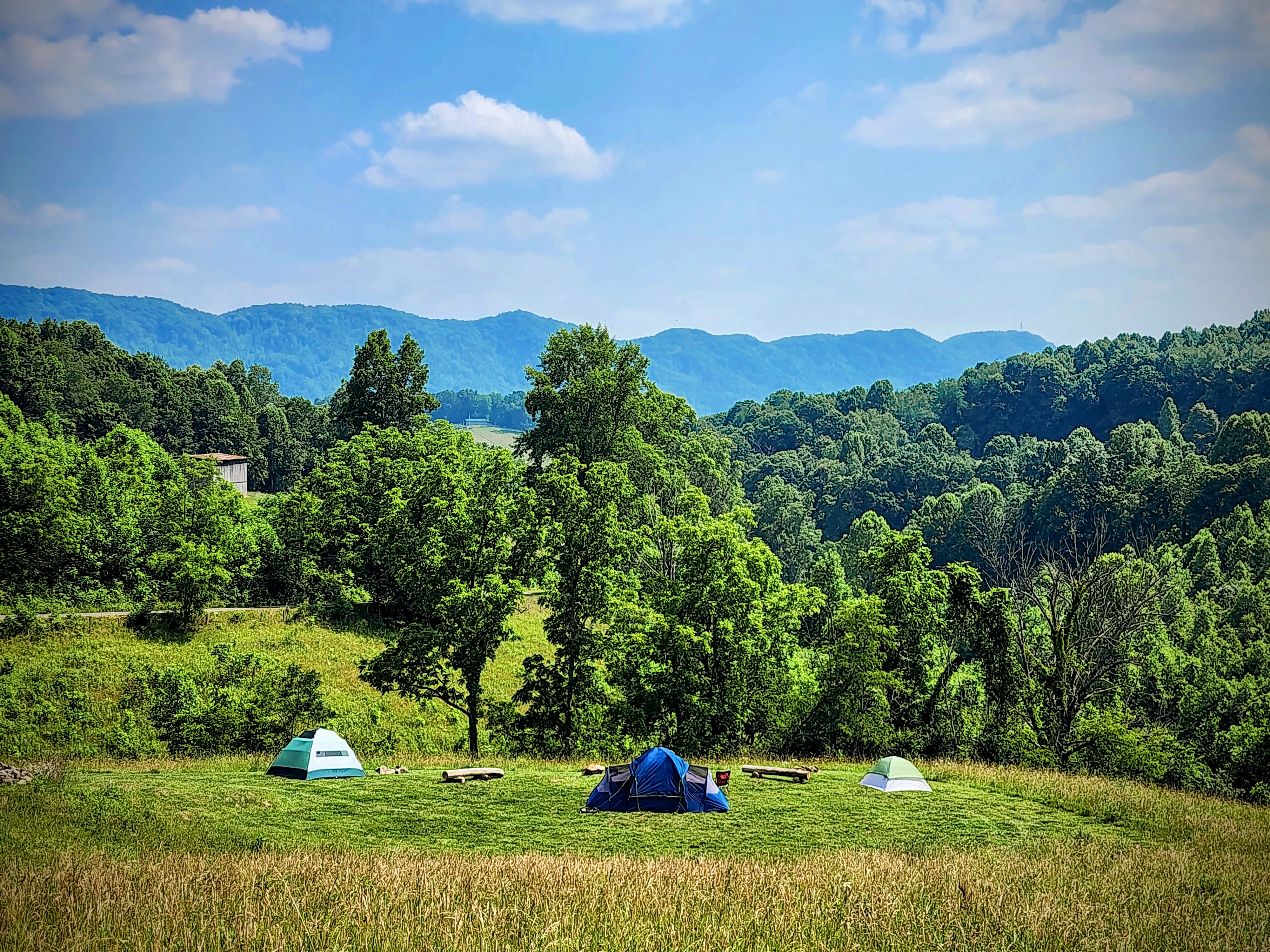 Breath of Dawn offers a range of back-to-nature accommodations on its 35-acre educational homestead in rural Lebanon, VA. Guests can stay in a primitive A-frame dry cabin, perched at a mountaintop vantage with cozy amenities—think mini-fridge, electric heater and AC, queen bed, and a fire pit—while enjoying panoramic views and full immersion in mountain life. For a more rustic experience, there are primitive camping spots on terraced hillside fields: each site includes a fire pit, bench, and porta-potty access, perfect for unplugging under the stars and embracing the wild.